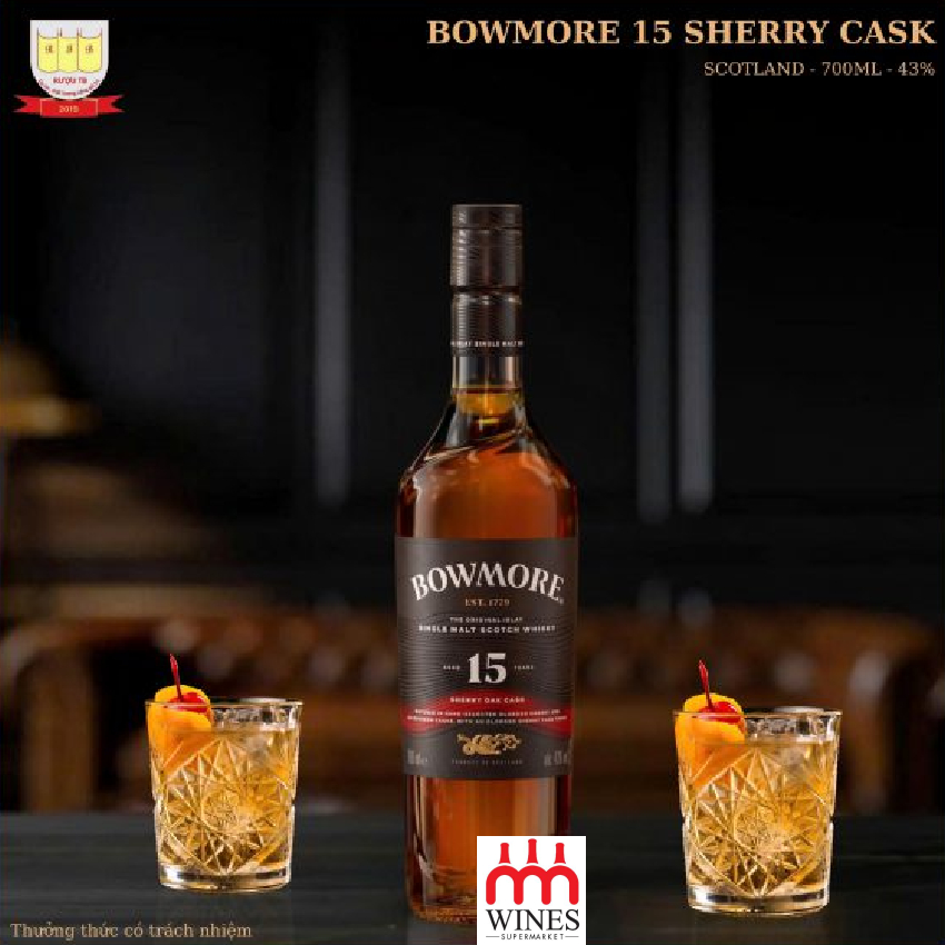 Được sản xuất tại quê hương Islay, Scotland, nơi Bowmore đặt trụ sở từ năm 1779, loại whisky mạch nha đơn cất này đã được ủ trong 15 năm, tạo nên một loại thùng gỗ sồi bí ẩn hòa quyện giữa vị ngọt và vị cay nồng. Rượu được ủ trong thùng gỗ sồi Olorose Sherry của Châu Âu và thùng gỗ sồi Mỹ ex-Bourbon, mang đến hương vị của rễ cam thảo, kẹo bơ cứng, kẹo mềm, đinh hương, hạt ca cao, nho khô, chà là và khói với một chút quế.
