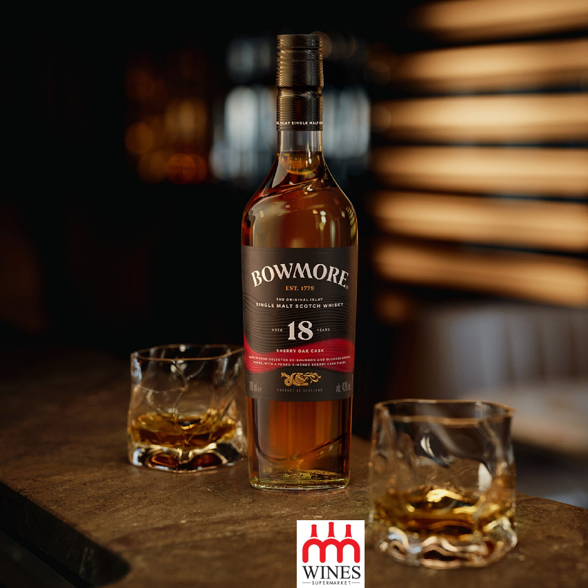 Trong thế giới whisky, dòng rượu đến từ đảo Islay – quê hương của phong cách than bùn (peat) – luôn sở hữu một vị thế đặc biệt. Giữa những tên tuổi trứ danh của vùng đất này, Bowmore là một trong những biểu tượng lâu đời nhất, mang theo truyền thống hơn hai thế kỷ. Mỗi sản phẩm Bowmore ra đời đều được chăm chút tỉ mỉ, nhưng Bowmore 18 Years Old Sherry Oak Cask thực sự là một tuyệt phẩm, kết tinh từ thời gian, hơi thở biển cả và những thùng gỗ sherry cao cấp được tuyển chọn kỹ lưỡng.