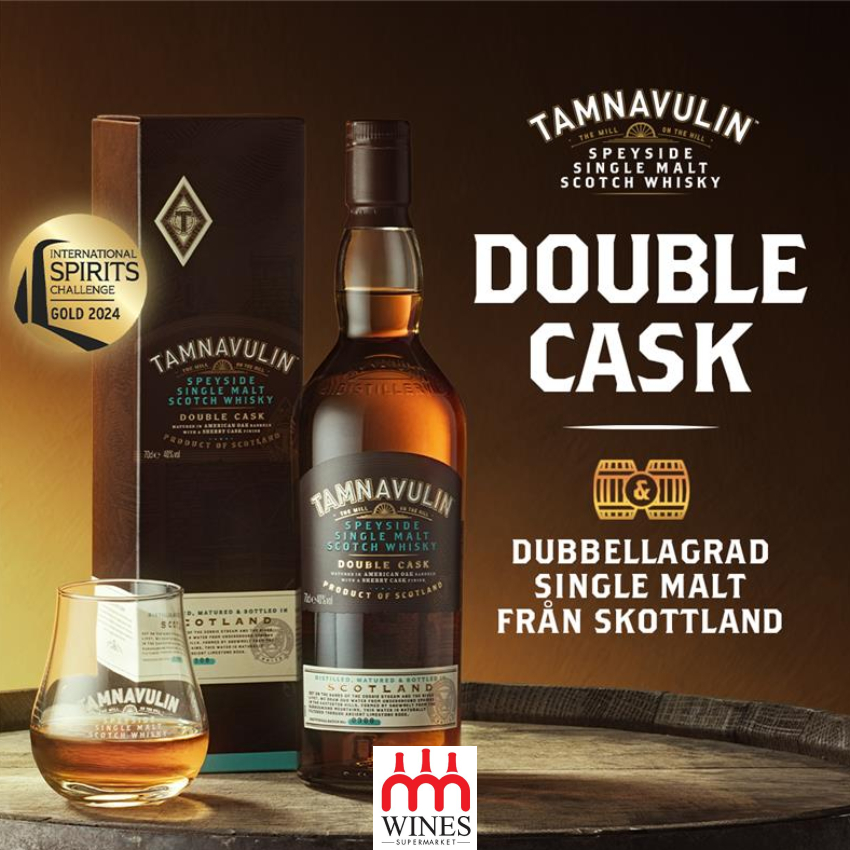 Tamnavulin Double Cask, được ủ hai thùng để có hương vị đậm đà và mượt mà được ủ trong gỗ sồi trắng Mỹ và được nâng cao bởi sự cầu kỳ trong thùng rượu vang đỏ Tempranillo.